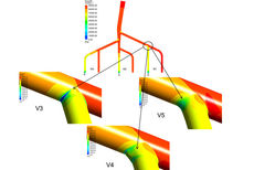 Da die Verteilrohrleitung nicht bzw. nur während der Wartungsarbeiten in mehrjährigen Zyklen zugänglich ist, wurden umfassende CFD-Berechnungen durchgeführt, um die Strömungssituation in der Verteilrohrleitung zu analysieren und die derzeitige Betriebsweise mit dem Betrieb im hydraulischen Kurzschluss gegenüberzustellen. Zu untersuchen war dabei, ob neben den zu erwartenden Strömungsverlusten auch strömungsinduzierte Druckpulsationen in der Verteilrohrleitung auftreten und die Zuströmung zu den Turbinen stören.
