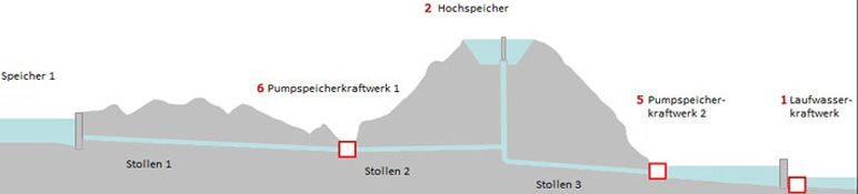 Für ein Pumpspeicher-Kraftwerk, das ursprünglich für den Wälzpumpbetrieb (Pumpen bzw. Leistungsaufnahme in den Nachtstunden und Leistungserzeugung bzw. Turbinieren tagsüber) konzipiert worden ist, wurden umfangreiche Untersuchungen bezüglich der Eignung auf die Betriebsweise des hydraulischen Kurzschlusses durchgeführt. Da die Kraftwerksanlage dafür nicht ausgelegt wurde, diese Betriebsweise jedoch eine größere Flexibilität des Regelbetriebs bietet, sollten vor allem die Auswirkungen auf die Verteilrohrleitung und die Maschinenwelle im transienten Kraftwerksbetrieb analysiert werden.