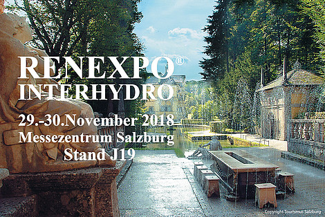 Am 29. und 30. November 2018 wird die Kongressmesse RENEXPO® INTERHYDRO in der Messe Salzburg erneut zum Treffpunkt der Wasserkraft-Branche. Mit Themen wie aktueller Stand der Technik und Innovationen, Rahmenbedingungen auf EU- und nationaler Ebene, Wirtschaftlichkeit und die ökologischen Aspekte der Wasserkraft spricht die RENEXPO® INTERHYDRO alle in der Wasserkraft tätigen Personen aus Wirtschaft und Industrie, Behörden und Kommunen, Politik und Wissenschaft sowie Hochschule und Universitäten aus ganz Europa an.