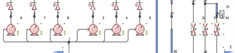 Ein international tätiger Konzern beauftragte für den Neubau eine Untersuchung zur Druckstoßsicherung der Kühlwasseranlage. Basierend auf den Daten des Auftraggebers wurde ein Berechnungsnetzwerk modelliert. Für die langen, vergrabenen und historisch alten Rohrstrecken wurden Näherungen getroffen, da der Auftraggeber nur über wenige Daten verfügte. Die Berechnungen wurden sowohl mit der Bestandssituation der Anlage als auch mit einer fiktiven größeren Leitung durchgeführt, um die aktuelle Druckstoßgefährdung bei der gewünschten Volllastmenge beurteilen zu können.