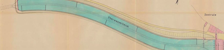 - Ausleitungsstrecke: 370 m langes Druckrohr (Ø 7,15 m) und 580 m Oberwasserkanal (Trapez-Querschnitt)