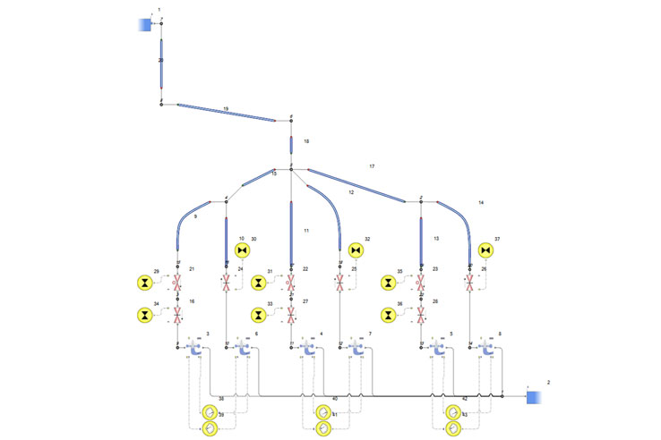 Through modeling of pipe networks pressure surge analysis for piping systems with different objectives are investigated. The results of the pressure surge analysis are used to optimize the system / piping system or is used for assessment of plant safety. All components have the real geometric dimensions.